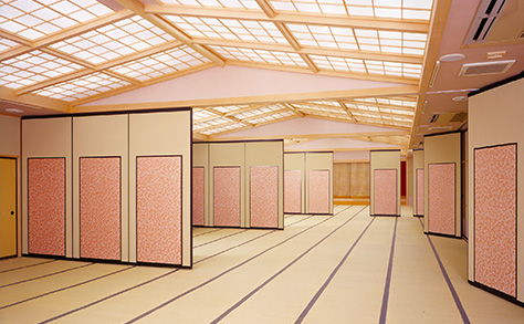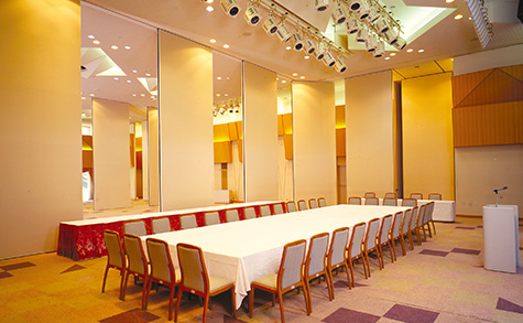 来場になるお客様の数によって、臨機応変に短時間でお部屋の広さを変えられるスライディングウォール導入がお奨めです。