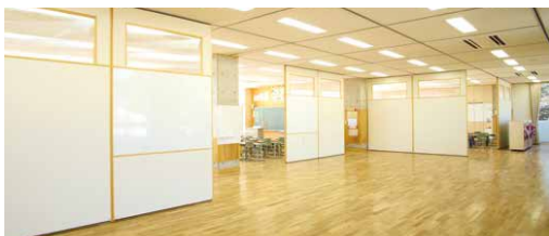 スライディングウォールなら時間帯やプログラム内容に合わせてパッとお部屋を仕切れます。